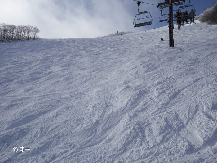 とはいえ週末の午後にパウダーが残っていないなんていつものことなんで平常運転。