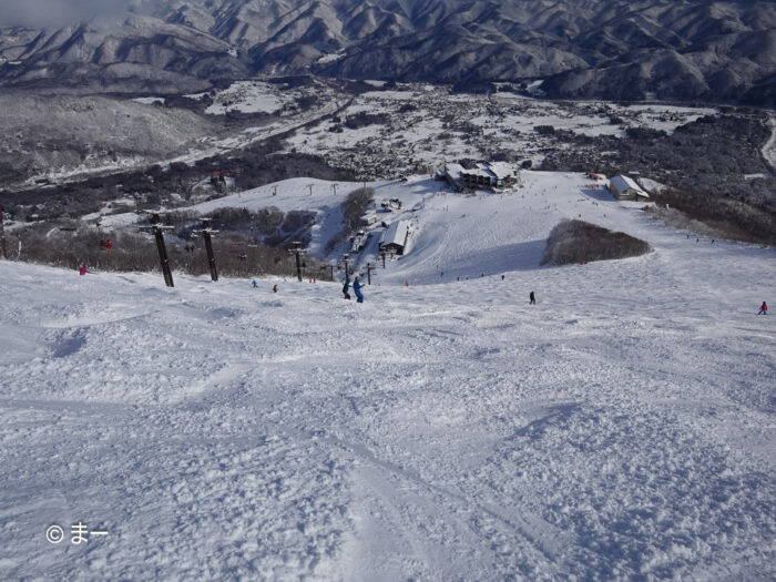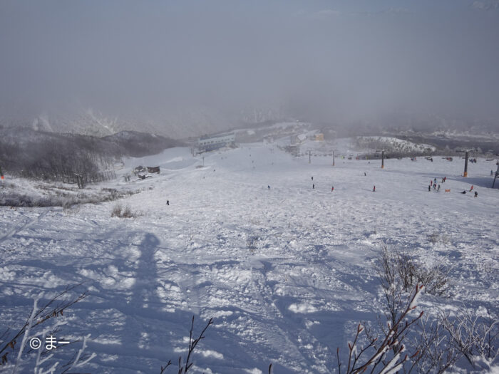 風で叩かれた雪だからか、荒れたバーンもそれほど柔らかいわけでもなく