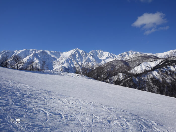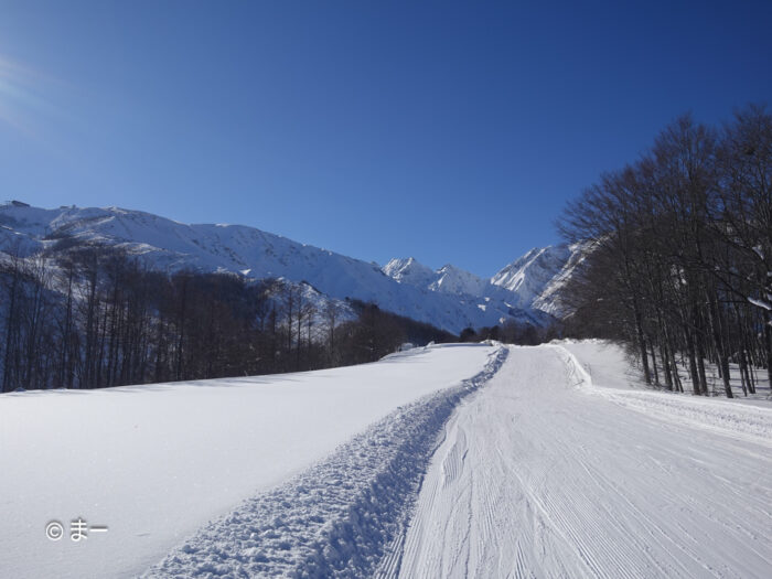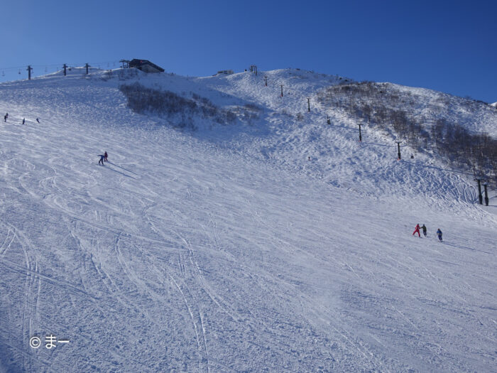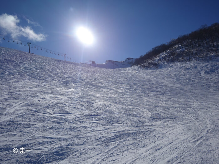移動で滑った黒菱の圧雪がよかったのは言うまでもなく、スカイラインも多少圧雪のうねりがあるもののいい感じ。