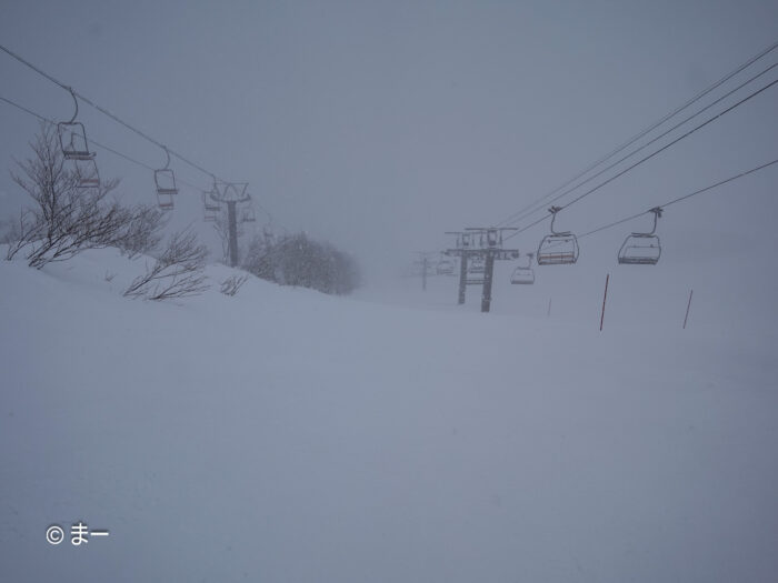 ちょうどタイミングが悪かったのか雪面が見づらく、何かあるんじゃないかと恐る恐る滑ると楽しさ半減。