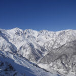 昨日は雪がチラつく一日、一夜明け最高の快晴に木々についた雪がよく映えます。