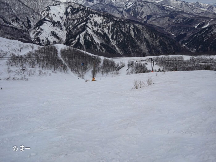 それと気になるのは雪が薄いところが目立ち、土や石が出ている箇所もありますので要注意。